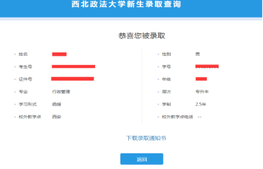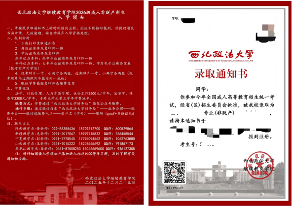 关于打印西北政法大学2025年非脱产学生录取通知书的通知